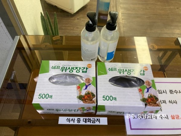직원식당 간이 칸막이설치, 위생장갑착용 강화된 감염예방활동