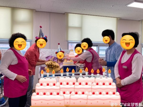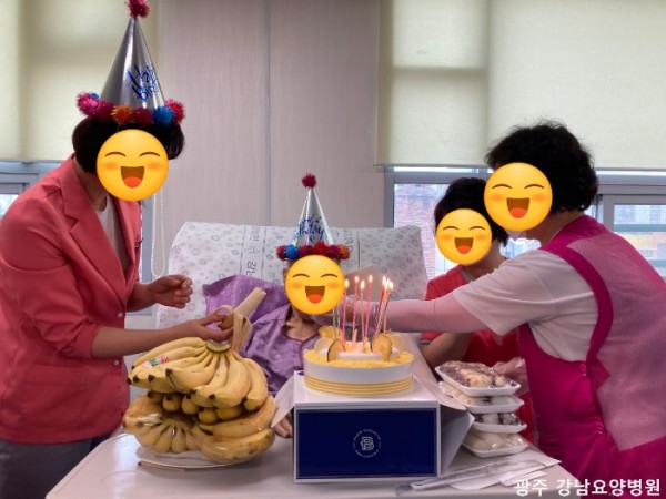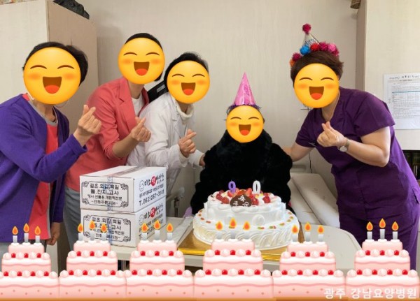 저희 강남요양병원에 계시는 100세와 90세 생신을 맞이하신 두 어르신 ~ 가족의 축하를 받으며 즐거웠을 생신이지만 코로나 감염 예방을 위해 비대면 면회도 중지되어 가족분들이 정성스럽게 보내주신 케이크와 음식으로 병동 선생님들과 함께 생신의 기쁨을 나누었습니다. 생신축하 장면은 사진과 동영상 촬영으로 담아 가족분에게 전달해 드렸고 음식은 선생님들께서 안전하게 드실 수 있도록 식이 보조해 드렸어요. 100세, 90세 생신을 맞이하신 어르신 진심으로 축하드립니다.~ ^^