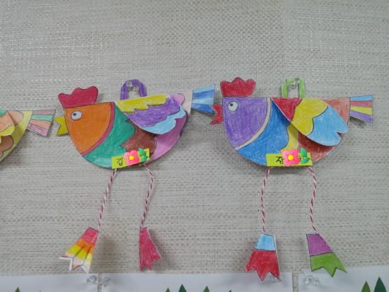 닭모양의 그림도안을 예쁜 색칠로