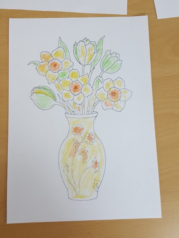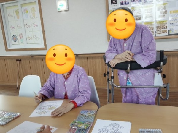 소그룹으로 화병 색칠하기를 진행했는데 그림 솜씨한번 보실래요? 색칠 활동은 소근육 발달과 인지 기능 향상에 도움을 주는 미술 프로그램이예요. 여가 프로그램 참여 활동은 다른 사람들과 대화를 나누며 혼자라는 생각보다는 함께 말벗이 되어 외로움을 덜 느낄 수 있어 도움이 되는 것 같아요. 완성된 작품은 환우분들이 볼 수 있도록 게시판에 부착해 드렸더니 너무 좋아하셨어요. 다음에도 더 흥미로운 여가활동 소식 전할게요.