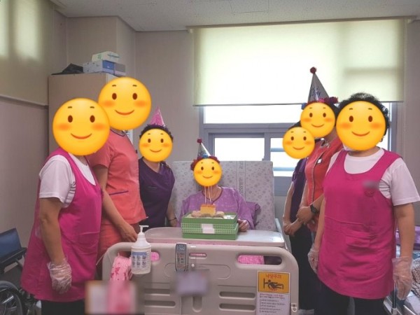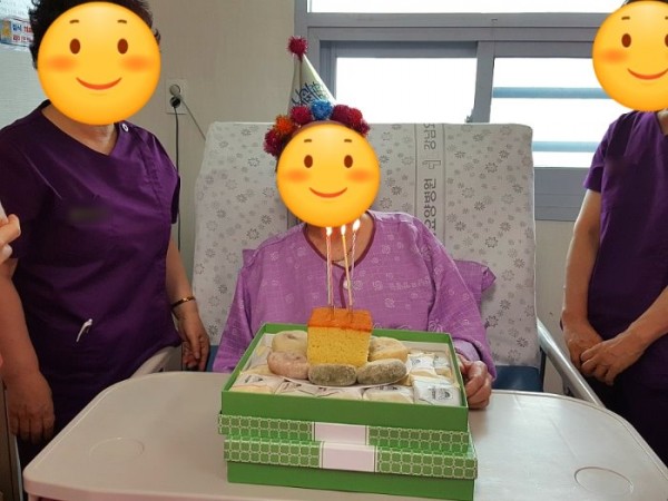 생신축하드립니다. 페이지 정보 작성자 사회복지사 작성일21-07-02 14:51 이전글 다음글 목록 본문 저희 강남요양병원에 입원중이신 어르신 가족분께서 생신 축하 떡 케이크를 보내주셨어요. 보내주신 케이크에 촛불도 꽂고 생신을 맞이하신 어르신 머리엔 고깔모자를 씌워드린 후 병동선생님들과 함께 생신축하송을 불러드렸어요. 갑작스럽 분위기에 당황하셨지만 매우 기뻐하셨어요. 진행하는 과정은 영상촬영 후 가족분에게 전송해 드렸어요. 이전글 다음글 목록