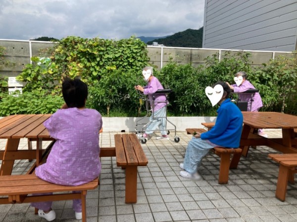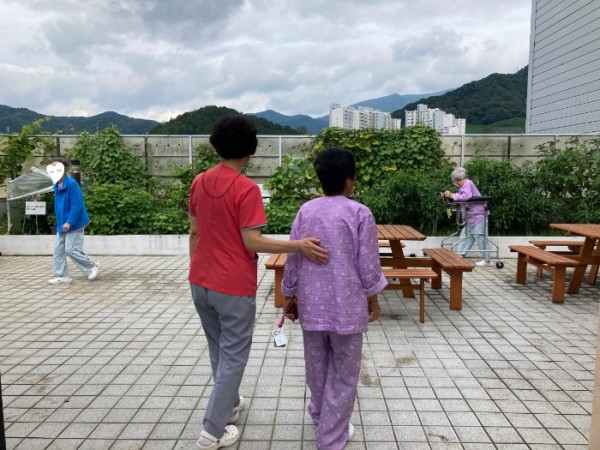 가을바람이 시원하게 불어오는 오후시간 3병동 어르신 몇분이 간호과 선생님과 동행하여 산책을 나오셨어요. 화단에 있는 깻잎을 보시며 우리 집 밭에도 깻잎이 잘 크고 있겠다 하셨어요. 몸이 아파 갑자기 들어 오셔서 농사 짓던 작물이 생각 나셨나 봐요. 몇 바퀴만 돌아도 금방 지치는 어르신  들 그래도 가을바람이 좋다고 내일 또 오시겠다네요 .^^